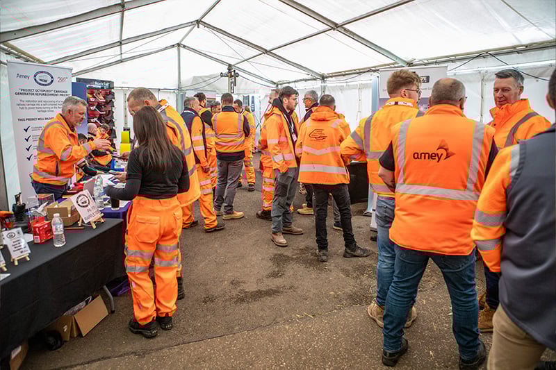During the event, a raffle was held to raise funds for “Project Octopussy” Carriage generator refurbishment project – An Amey initiative in partnership with Nene Valley Railway. The goal: to restore and repurpose a heritage railway carriage, transforming it into a self-contained mobile power hub capable of supplying onboard power to trains running from Nene Valley heritage railway.
